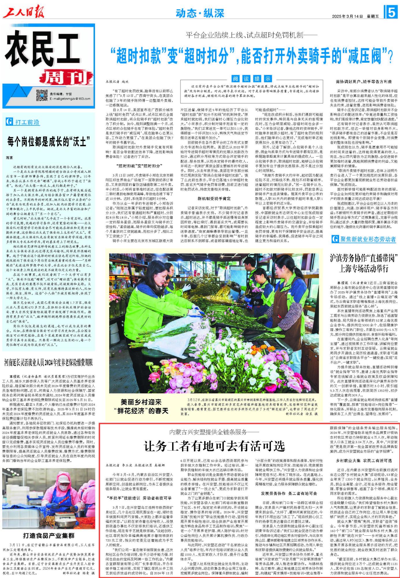 2025年3月14日《工人日報》第5版刊發(fā)了《內(nèi)蒙古興安盟提供全鏈條服務(wù)——讓務(wù)工者有地可去有活可選》的文章,報道了今年2月—3月,內(nèi)蒙古自治區(qū)興安盟人社部門以就業(yè)促進行動為牽引,不斷挖掘發(fā)展新空間,創(chuàng)造就業(yè)新崗位,為務(wù)工者提供全鏈條服務(wù),讓就業(yè)更有溫度。