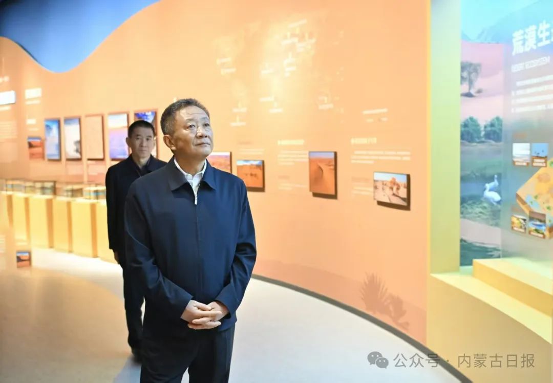 5月11日,自治區(qū)黨委書記孫紹騁在恩格貝沙漠博物館參觀,詳細了解荒漠化綜合防治的歷史沿革、理論成果和實踐經(jīng)驗。草原云·內蒙古新聞網(wǎng)記者 馬建兵