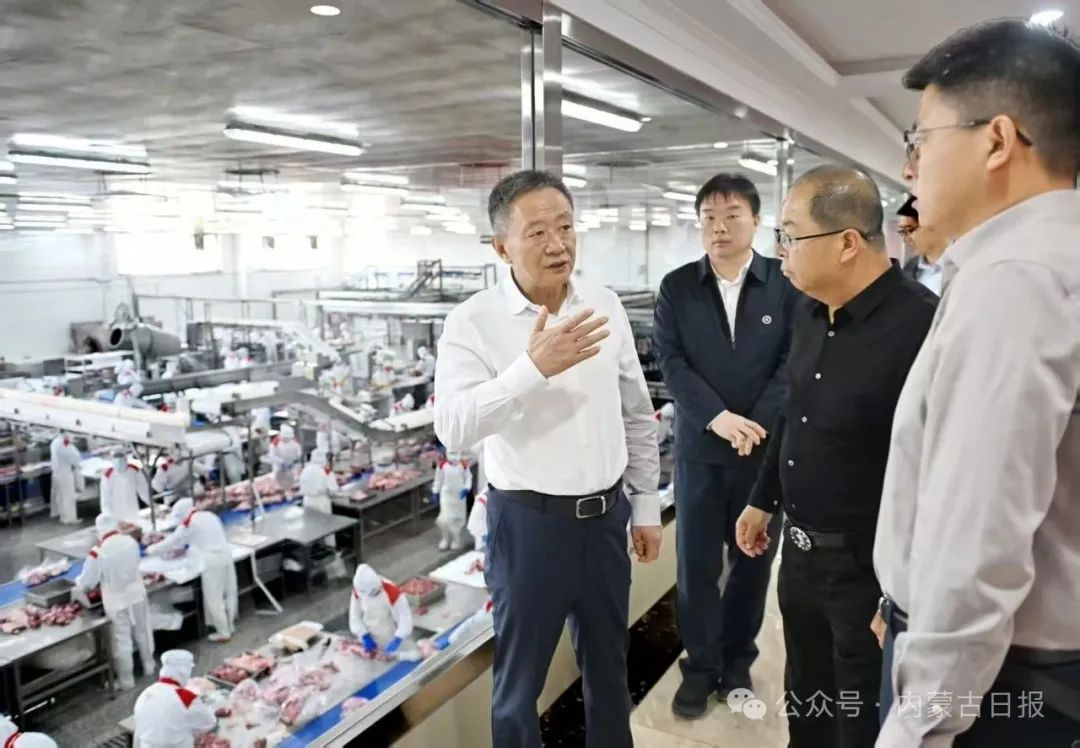 5月27日,自治區(qū)黨委書記孫紹騁來到草原鑫河食品有限公司,走進生產(chǎn)車間和產(chǎn)品展示區(qū),了解肉羊屠宰加工銷售和肉羊品種、產(chǎn)品創(chuàng)新、副產(chǎn)物綜合利用狀況。草原云·內(nèi)蒙古新聞網(wǎng)記者 馬建兵 攝