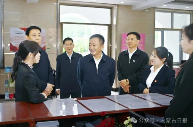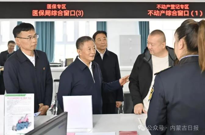 6月16日,自治區(qū)黨委書(shū)記孫紹騁來(lái)到阿爾山市政務(wù)服務(wù)和大數(shù)據(jù)中心,同辦事群眾和工作人員進(jìn)行交流,實(shí)地了解基層職能職責(zé)、減負(fù)效果等情況。草原云·內(nèi)蒙古新聞網(wǎng)記者