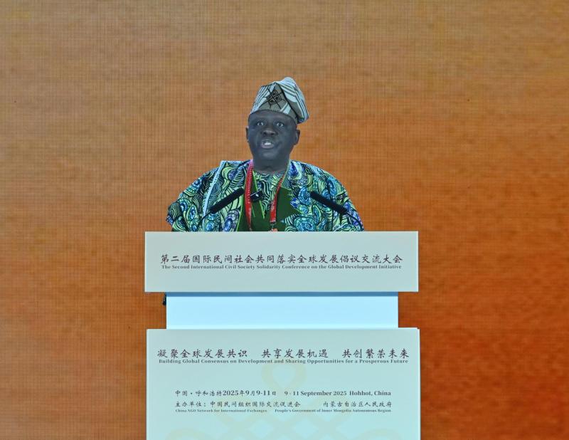 9月10日,貝寧國民議會議長弗拉沃努在第二屆國際民間社會共同落實全球發(fā)展倡議交流大會開幕式上致辭。草原云·內(nèi)蒙古新聞網(wǎng)記者 馬建兵 攝