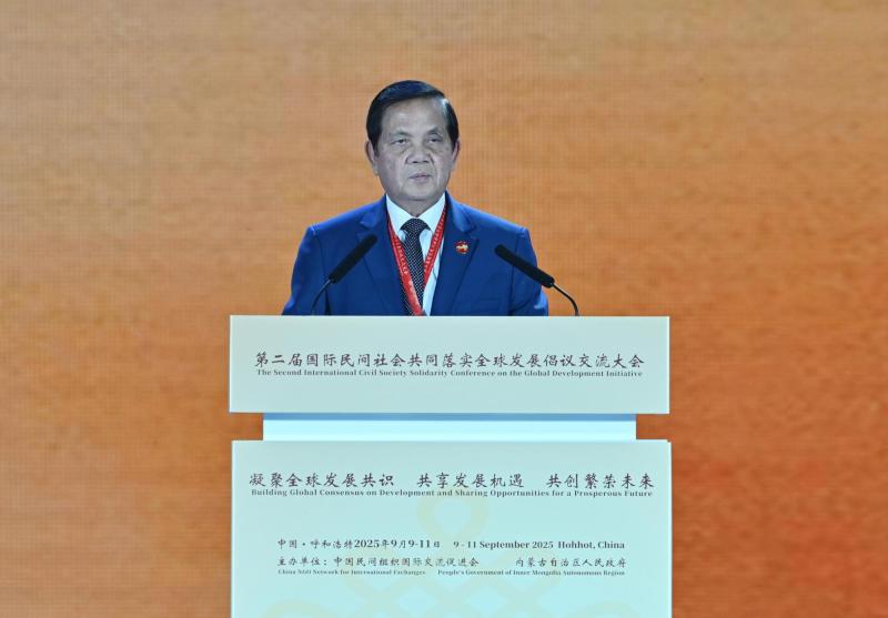 9月10日,柬埔寨參議院第一副主席吳波烈在第二屆國際民間社會共同落實全球發(fā)展倡議交流大會開幕式上致辭。草原云·內(nèi)蒙古新聞網(wǎng)記者 馬建兵 攝