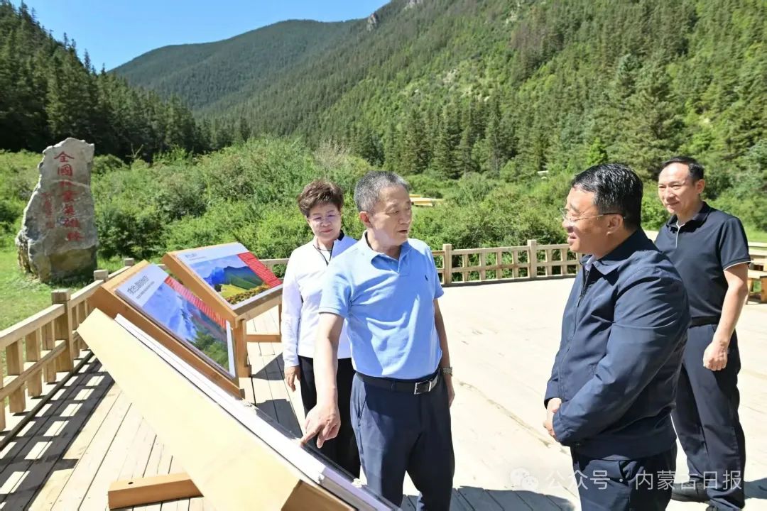7月9日,自治區(qū)黨委書(shū)記孫紹騁在內(nèi)蒙古賀蘭山國(guó)家級(jí)自然保護(hù)區(qū)雪嶺子聽(tīng)取賀蘭山生態(tài)環(huán)境保護(hù)情況介紹。草原云·內(nèi)蒙古新聞網(wǎng)記者 馬建兵 攝