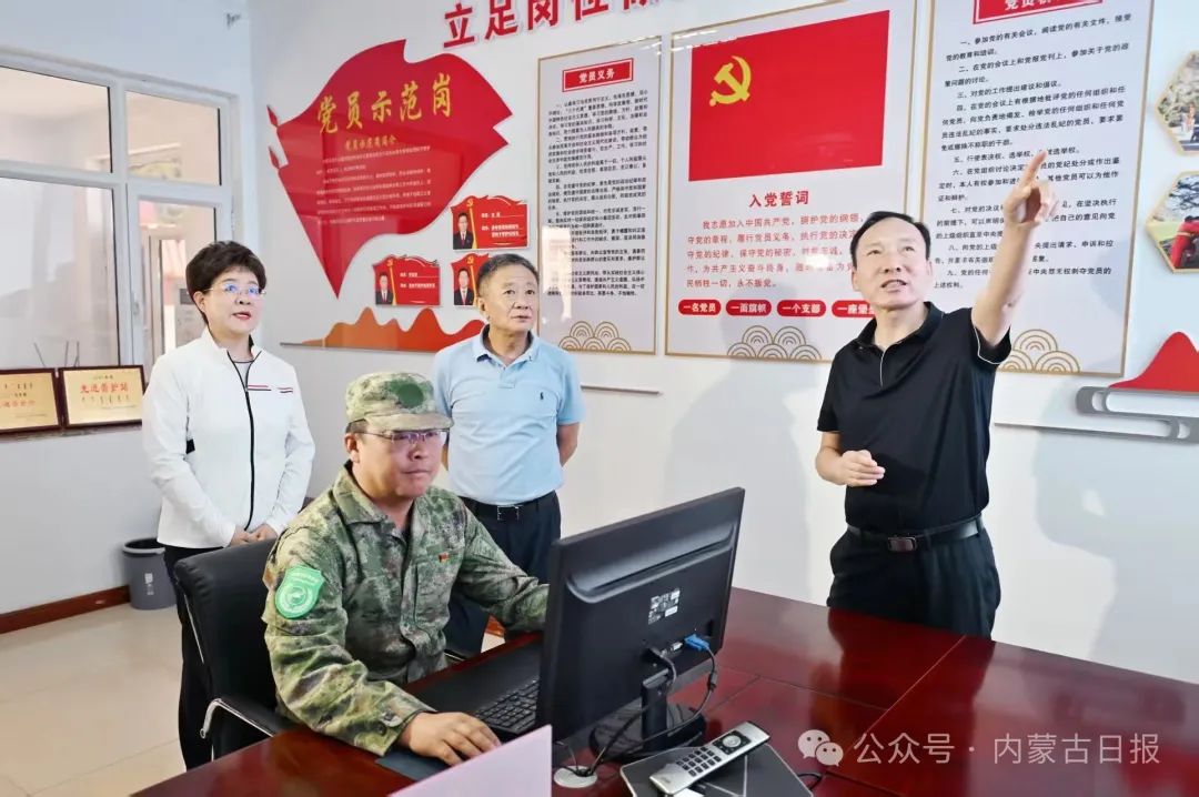 7月9日,自治區(qū)黨委書(shū)記孫紹騁走進(jìn)內(nèi)蒙古賀蘭山國(guó)家級(jí)自然保護(hù)區(qū)雪嶺子管護(hù)站,察看綜合安防管理平臺(tái)運(yùn)行情況。草原云·內(nèi)蒙古新聞網(wǎng)記者 馬建兵 攝