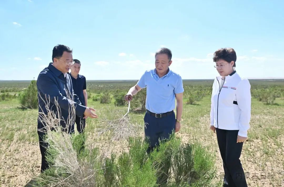 7月9日,自治區(qū)黨委書(shū)記孫紹騁來(lái)到“百萬(wàn)畝”梭梭生態(tài)林基地宗別立項(xiàng)目區(qū),詳細(xì)了解已治理區(qū)域成效。草原云·內(nèi)蒙古新聞網(wǎng)記者 馬建兵 攝