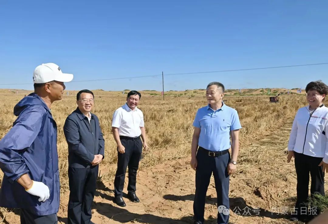 7月9日,自治區(qū)黨委書(shū)記孫紹騁走進(jìn)騰格里沙漠東緣防沙治沙項(xiàng)目區(qū),實(shí)地察看在建項(xiàng)目進(jìn)展,隨機(jī)檢查已治理區(qū)域成效。草原云·內(nèi)蒙古新聞網(wǎng)記者 馬建兵