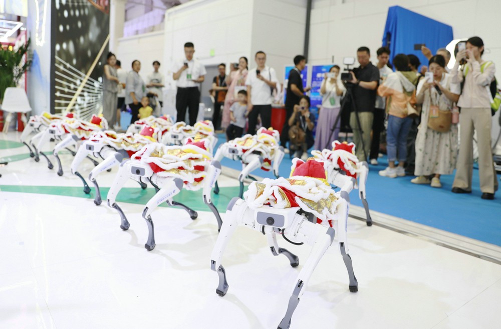 呼和浩特展區(qū)機器狗伴著愛樂樂團的演奏翩翩起舞