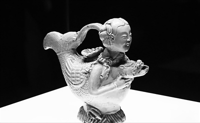 遼代白釉人首摩羯形提梁壺。新華社發(fā)