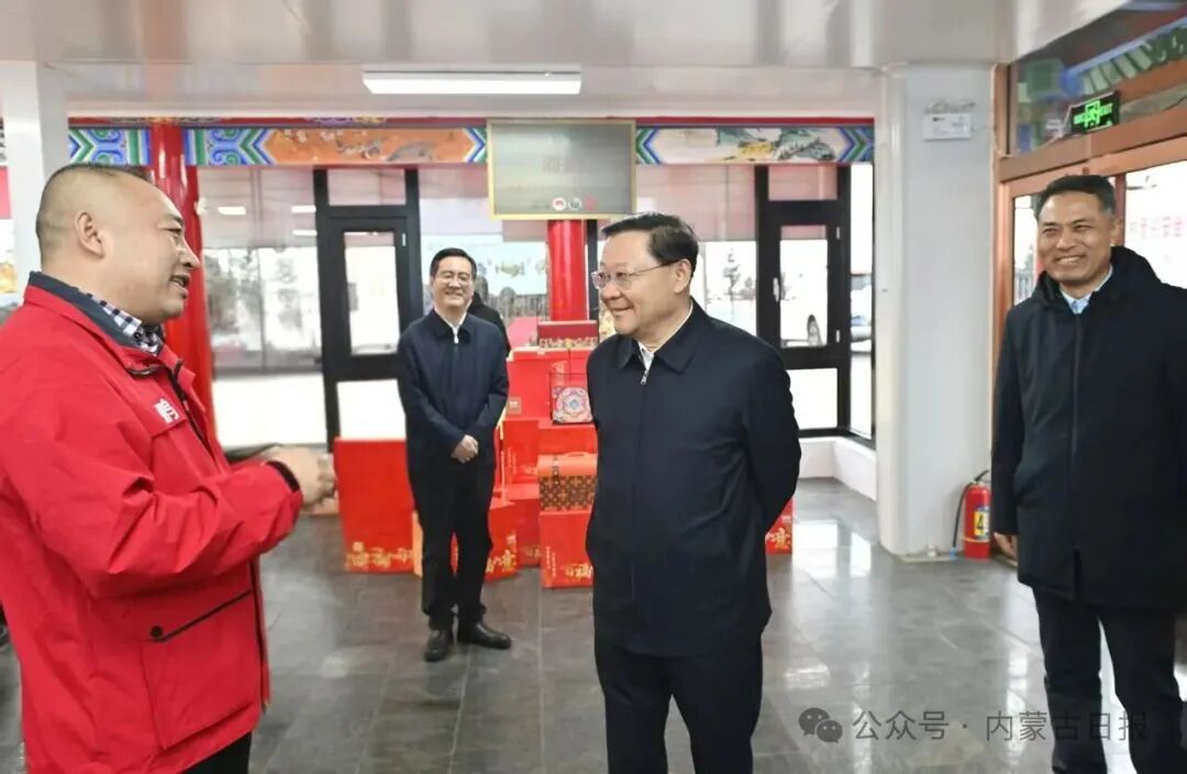 12月1日,自治區(qū)黨委書記王偉中在海鵬食品股份有限公司調(diào)研,詢問生產(chǎn)技藝革新、銷售布局、品牌建設(shè)等情況。草原云·內(nèi)蒙古新聞網(wǎng)記者 馬建兵 攝