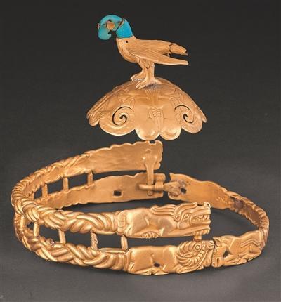 戰(zhàn)國(guó)時(shí)期鷹頂金冠飾。內(nèi)蒙古博物院供圖