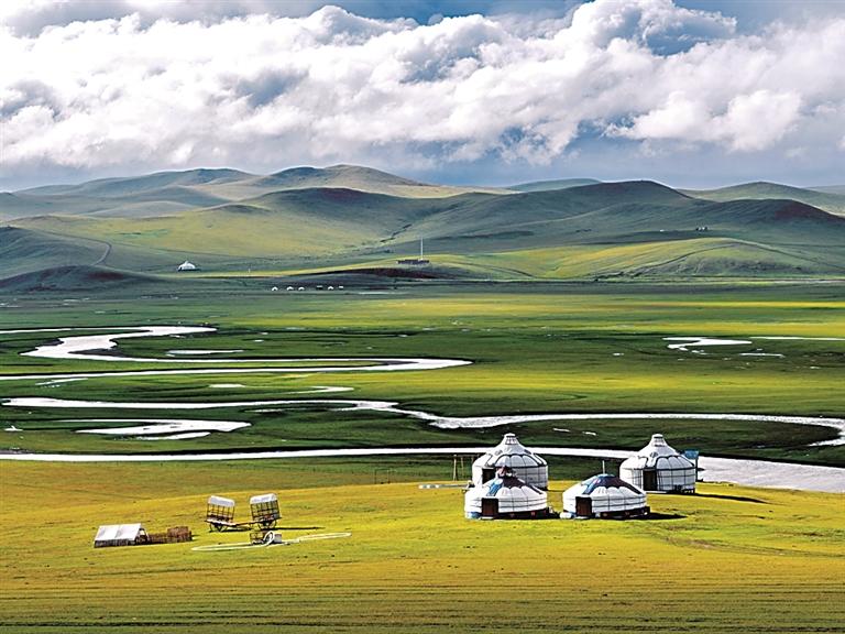 天似穹廬,籠蓋四野。夏秋季節(jié),走進敕勒川草原,綿延綠浪涌向遠方,在廣袤大地鋪展,與陰山山脈相接。“風(fēng)吹草低見牛羊”的草原美景仿佛穿越千年而來,依舊震撼人心。