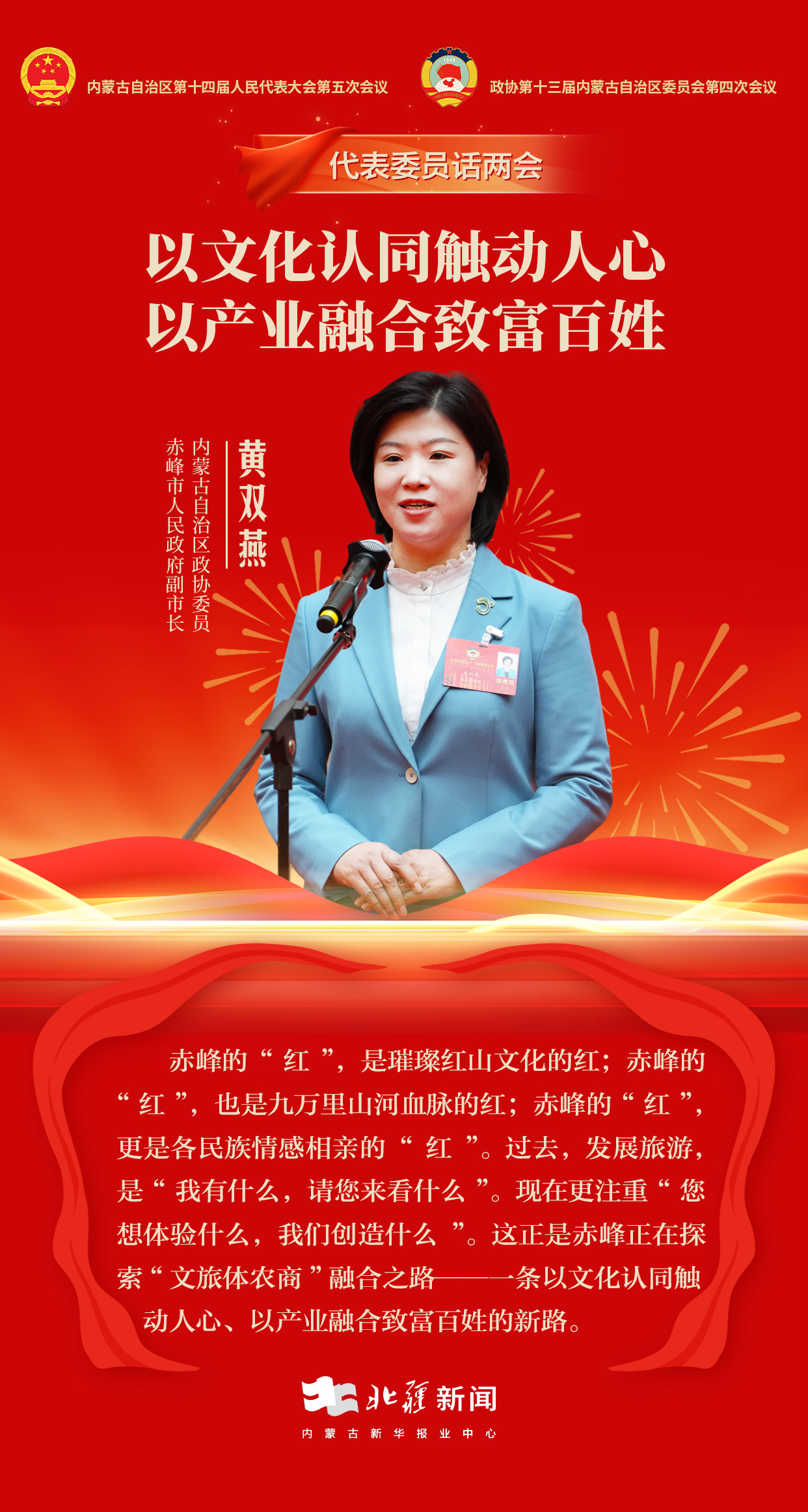 自治區(qū)政協(xié)委員、赤峰市人民政府副市長黃雙燕介紹,過去,發(fā)展旅游,是“我有什么,請您來看什么”?,F(xiàn)在更注重“您想體驗什么,我們創(chuàng)造什么”。這正是赤峰正在探索“文旅體農(nóng)商”融合之路——一條以文化認同觸動人心、以產(chǎn)業(yè)融合致富百姓的新路。