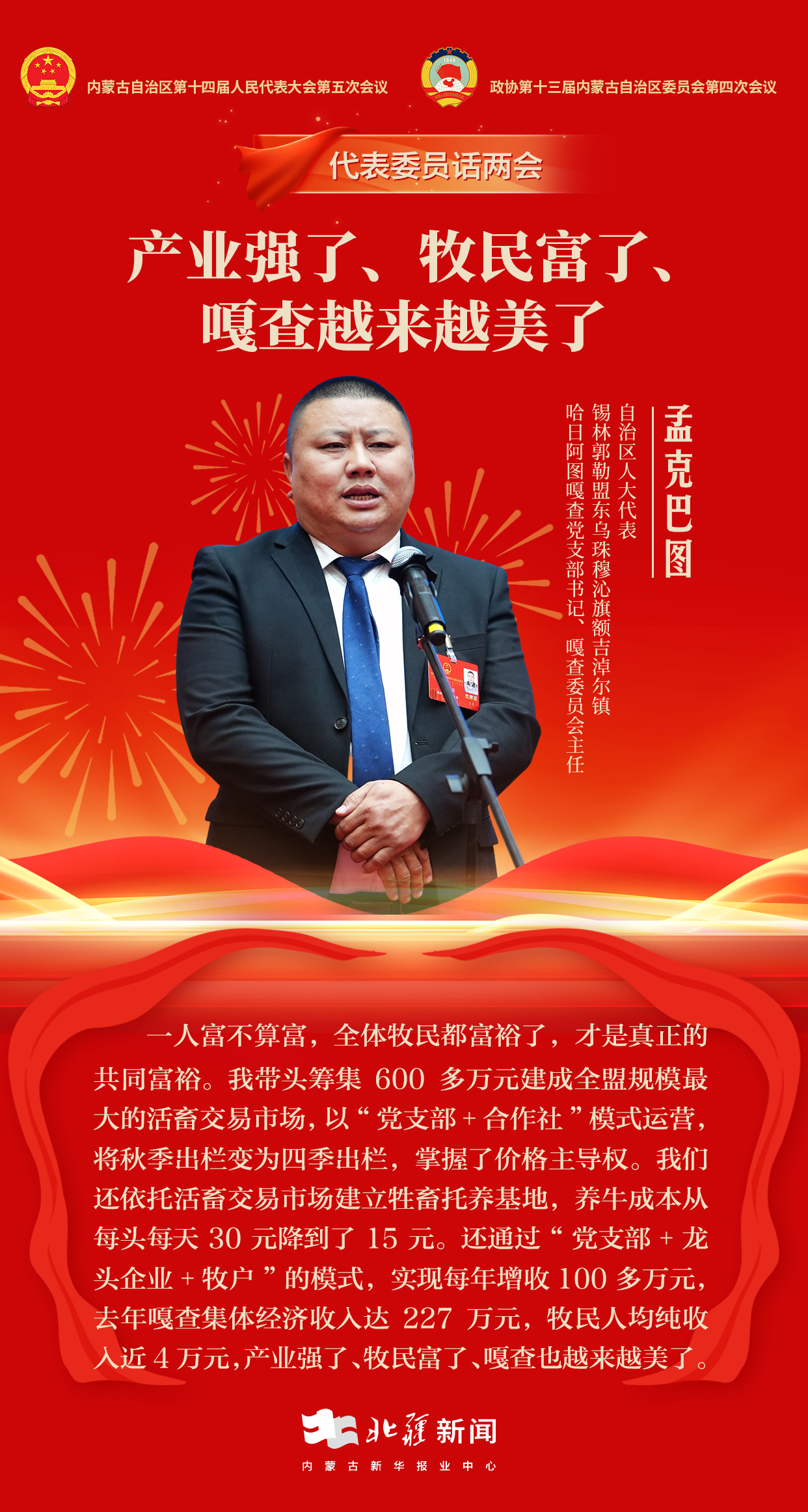 代表委員話兩會|孟克巴圖:強支部、富牧民、聚民心 牧民的日子越過越紅火