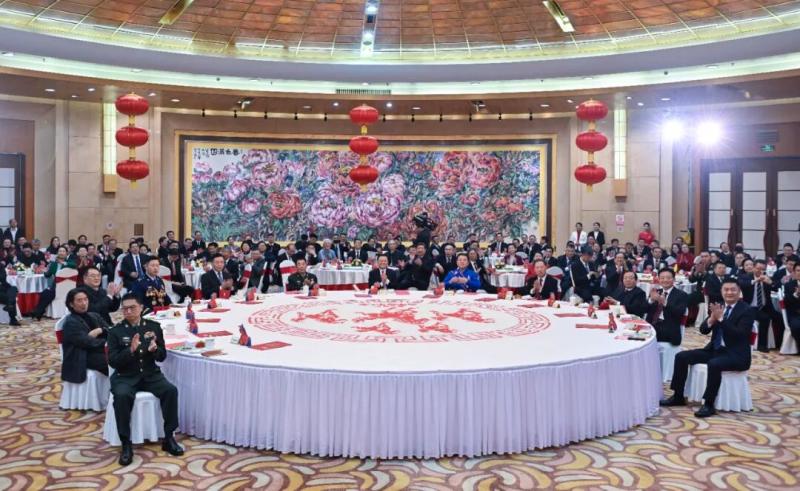 新城賓館國宴廳內(nèi)張燈結(jié)彩,與會(huì)各界人士互致問候、祝福新春,現(xiàn)場洋溢著歡樂喜慶的節(jié)日氣氛。