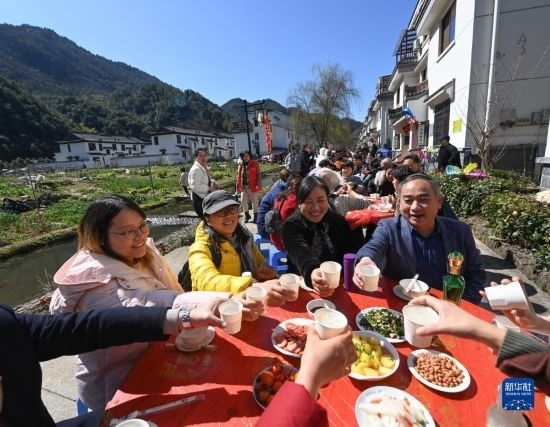 當(dāng)日,上千名游客來到浙江省建德市蓮花鎮(zhèn)戴家新村民宿一條街,參加鄉(xiāng)村特色百家宴,感受新農(nóng)村“舌尖上的幸?!薄1敬梧l(xiāng)村百家宴也標志著2023建德市蓮花鎮(zhèn)鄉(xiāng)村民俗旅游文化節(jié)正式開啟。