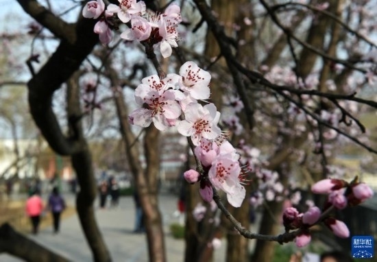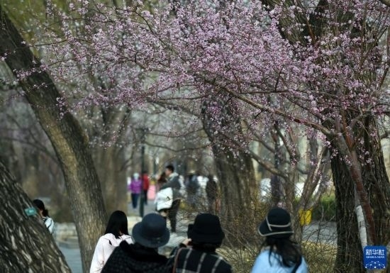 近期,隨著氣溫升高,北京玉淵潭公園里的山桃花爭相綻放,美不勝收。