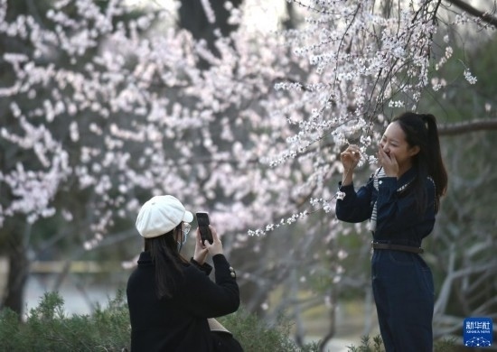 3月8日,游客在北京玉淵潭公園賞花。