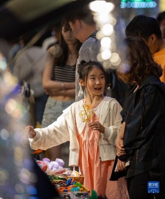 5月1日,游客在寧夏銀川市西夏區(qū)懷遠觀光夜市游覽。