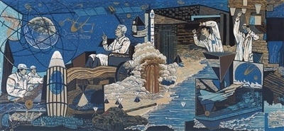 “大國(guó)重器”亮點(diǎn)紛呈,脫貧攻堅(jiān)成就舉世矚目,這些時(shí)代新象都在展覽中得到體現(xiàn)。例如,張輝君油畫(huà)《蛟龍入?!?、沙永匯版畫(huà)《北斗》等作品,折射出我國(guó)科技自主創(chuàng)新能力不斷提升。孔紫中國(guó)畫(huà)《戈壁灘》和劉云中國(guó)畫(huà)《美麗鄉(xiāng)村》,分別借助植樹(shù)造林的人物群像塑造、新農(nóng)村景觀(guān)的宏闊描繪,展現(xiàn)了彪炳史冊(cè)的人間奇跡。