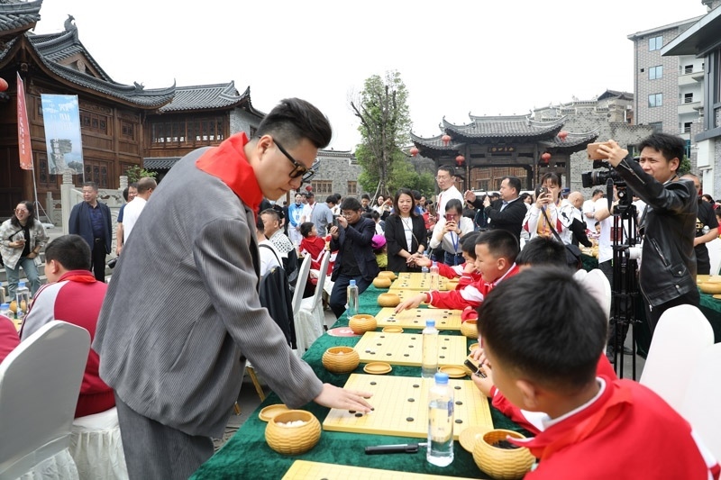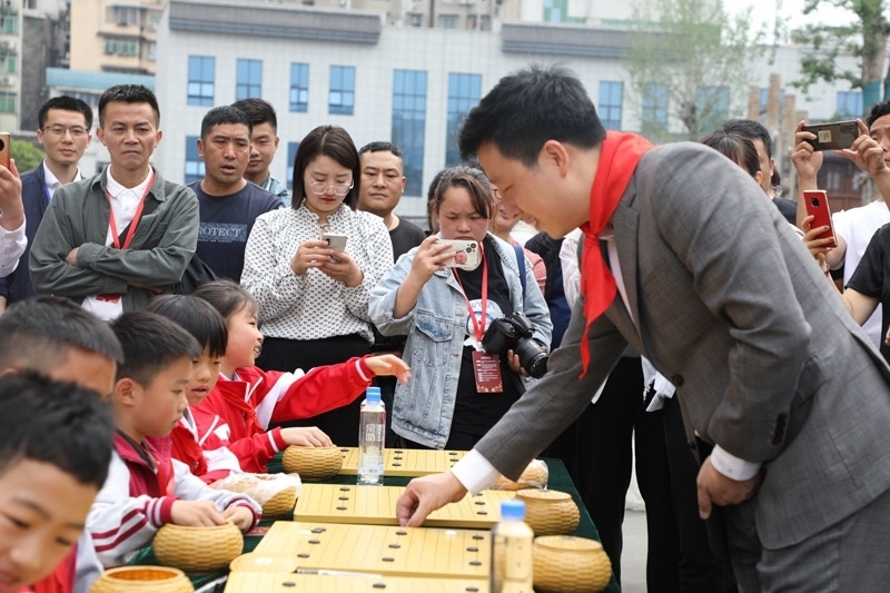 人民網銅仁5月15日電 (記者李乃妍)5月14日,第十屆中國女子圍棋甲級聯賽希望教室捐贈儀式和指導棋活動在銅仁市梵凈書院進行,中國圍棋協(xié)會主席林建超等出席活動并發(fā)言。世界冠軍古力、孔杰、馬曉春等與當地小棋童下指導棋。