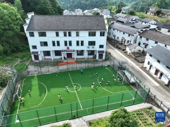 浙江紹興諸暨市浬浦鎮(zhèn)中心學(xué)校依托村鎮(zhèn)足球場、中醫(yī)藥文化體驗(yàn)中心等,開展足球、木球、五禽戲等特色項(xiàng)目,為體育教育注入活力。