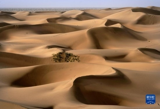 這是9月7日在新疆喀什地區(qū)麥蓋提縣N39°沙漠旅游景區(qū)拍攝的沙漠風光(無人機照片)。