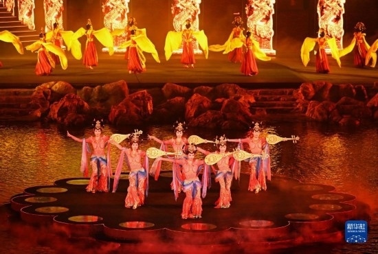 8月26日,演員在北戴河碧螺塔酒吧公園為游客表演大型實景秀《浪淘沙·北戴河》。