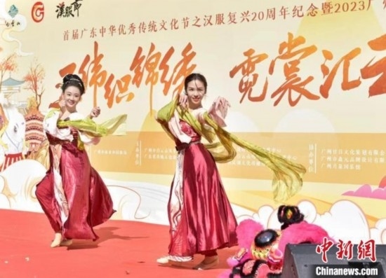 中新網(wǎng)廣州11月18日電 (記者 程景偉)2023云山漢服節(jié)啟動儀式18日在廣州市白云山鳴春谷景區(qū)山頂廣場舉行,現(xiàn)場通過醒獅、舞蹈等節(jié)目表演,拉開了首屆廣東中華優(yōu)秀傳統(tǒng)文化節(jié)系列活動之漢服復興20周年紀念暨2023云山漢服節(jié)活動的帷幕。