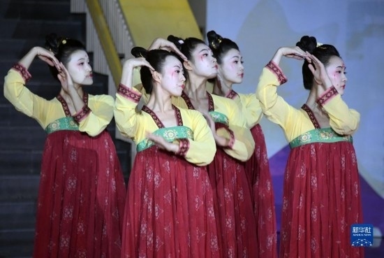12月4日,在清華大學(xué)藝術(shù)博物館,來(lái)自北京師范大學(xué)的學(xué)生表演舞蹈《宮樂(lè)圖》。