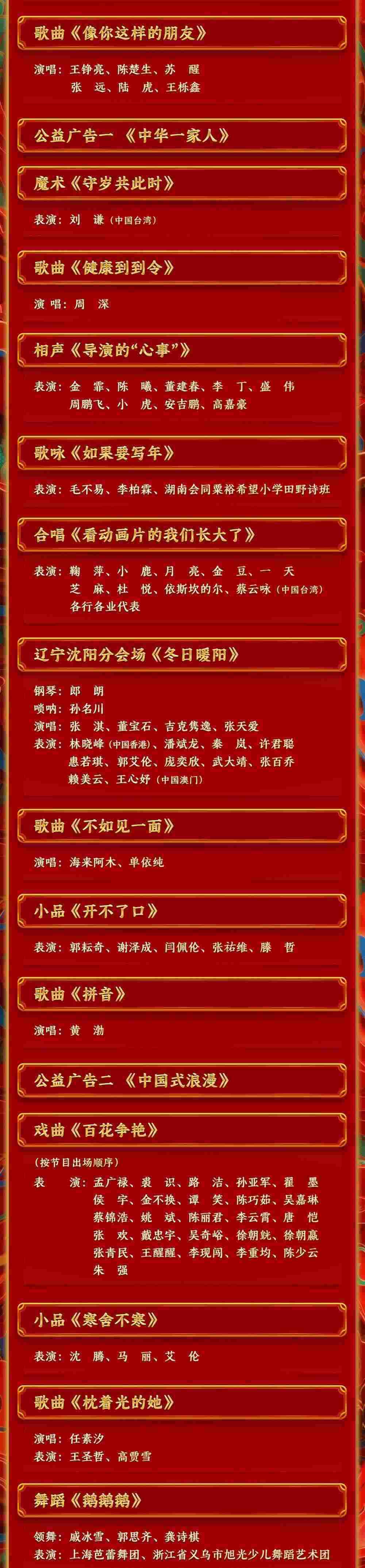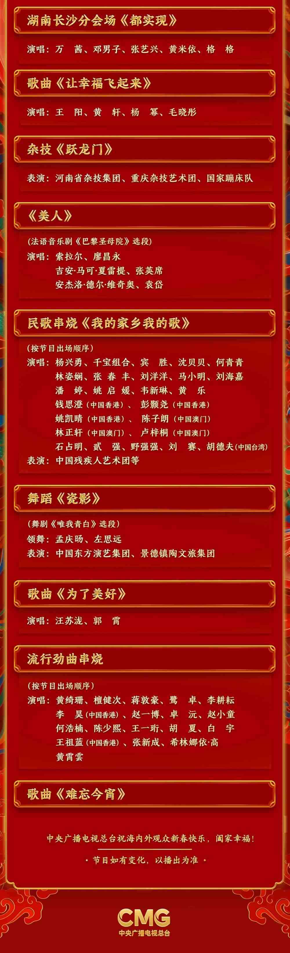 春滿中華,福到萬家。中央廣播電視總臺《2024年春節(jié)聯(lián)歡晚會》節(jié)目單正式發(fā)布。
