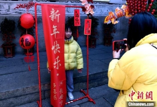 記者見(jiàn),該民俗博物館還新增了多處新春打卡點(diǎn),并準(zhǔn)備了拍照道具,供人們合影留念。數(shù)字裝置也是館內(nèi)的熱門打卡點(diǎn),許多小朋友在裝置前盡情體驗(yàn)3D漢服變裝秀,感受科技與傳統(tǒng)的相融合。