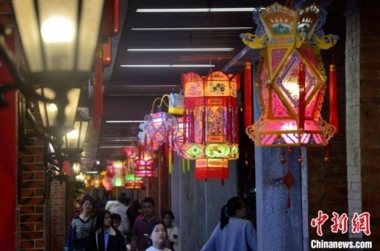 圖為2月20日晚,泉州中山路騎樓兩側(cè),花燈流光溢彩,美不勝收。 中新網(wǎng)記者 張斌 攝