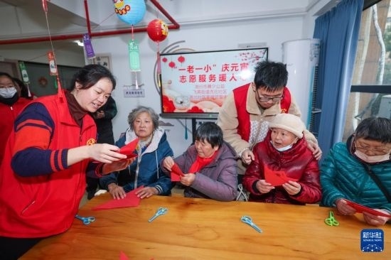 臨近元宵佳節(jié),浙江省湖州市吳興區(qū)飛英街道組織各社區(qū)社工和黨員志愿者開展形式多樣的“一老一小”慶元宵活動(dòng),組織老人和未成年人猜燈謎、剪窗花、做燈籠,還為行動(dòng)不便的老人送去湯圓和節(jié)日的問候。