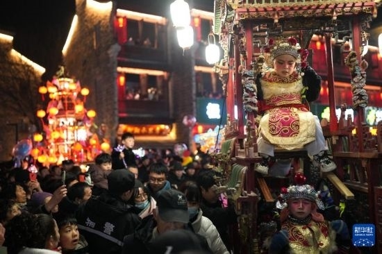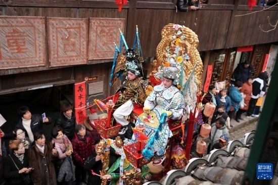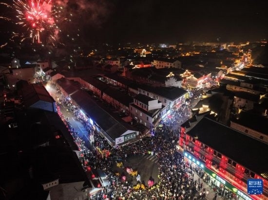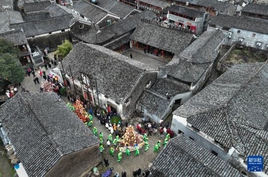 當(dāng)日,有500多年歷史的前童元宵行會在浙江省寧??h前童古鎮(zhèn)舉行。每年正月十四、十五舉行的前童元宵行會始于明中葉,群眾以鳴群鑼、抬鼓亭、放銃花等方式紀(jì)念祖先開渠鑿砩、灌溉農(nóng)田的功德,祈愿年景豐收。2014年,前童元宵行會入選第四批國家級非物質(zhì)文化遺產(chǎn)名錄。近年來前童古鎮(zhèn)發(fā)展旅游經(jīng)濟,元宵行會成為展示鄉(xiāng)村振興的重要窗口。