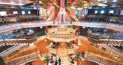 遠(yuǎn)觀“愛達(dá)·魔都號”,層疊密布的艙室和舷窗能承載5246人;走進船體內(nèi)部,高達(dá)16層、超過4萬平方米的生活娛樂區(qū)域內(nèi),劇場、泳池、健身房、餐廳、畫廊等娛樂設(shè)施應(yīng)有盡有,儼然是一座“移動的海上城市”。