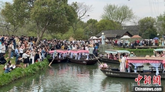 為了給游客提供更多元化的傳統(tǒng)文化體驗(yàn),此次花朝節(jié)期間,游客除了入園踏春賞花外,還可以拍攝綠堤上的美陳展示、看三深大會堂里的漫畫展、逛蔣村慢生活街區(qū)的文創(chuàng)市集和河渚街的花朝市集、體驗(yàn)搖櫓船上的“宋韻花朝”套餐等,更可以在每個周末及節(jié)假日下午,與春天代言人“賣花郎”互動、跟著美麗的花神巡游、參與西溪水鄉(xiāng)婚禮互動表演,解鎖春日限定的浪漫。(王題題)