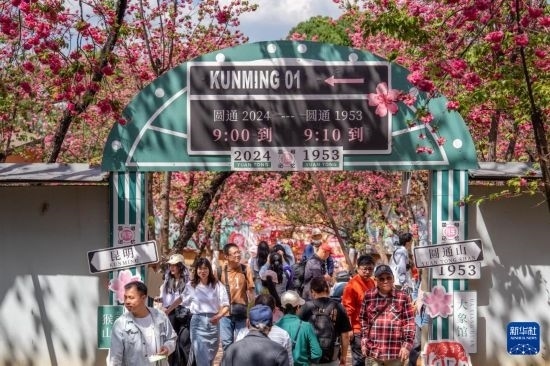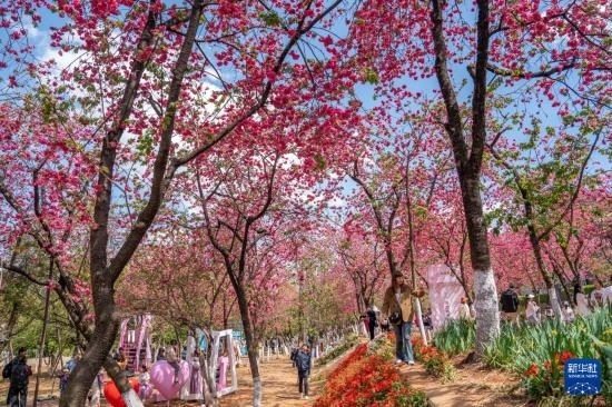 近日,云南昆明圓通山公園的櫻花進(jìn)入盛花期,吸引眾多市民和游客前來觀花賞景,樂享春日時(shí)光。