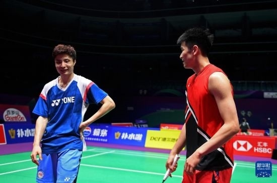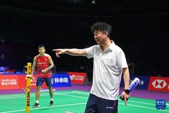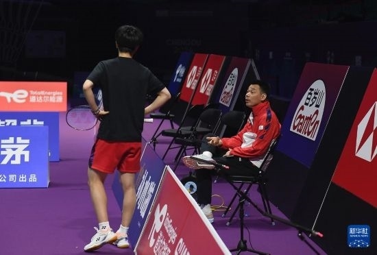 4月26日,中國羽毛球協(xié)會(huì)副主席夏煊澤(右)在訓(xùn)練中指導(dǎo)王祉怡。新華社記者 侯昭康 攝