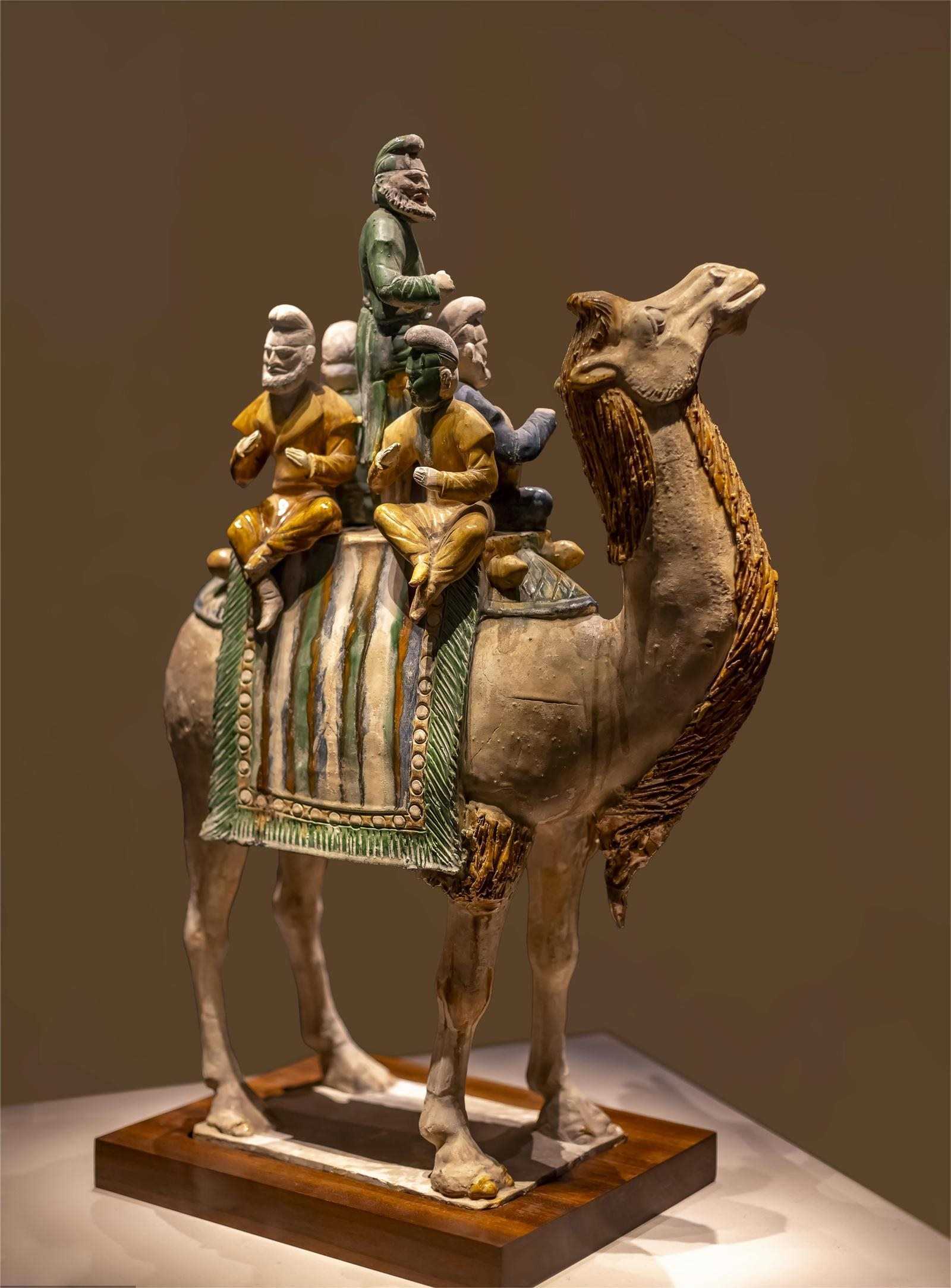中國國家博物館的唐三彩釉陶載樂駱駝巧妙地夸張了人與駝的比例,造型優(yōu)美生動(dòng),釉色鮮明潤澤,代表了唐三彩的最高水平,更重要的是,它見證了絲綢之路上的文明互鑒。