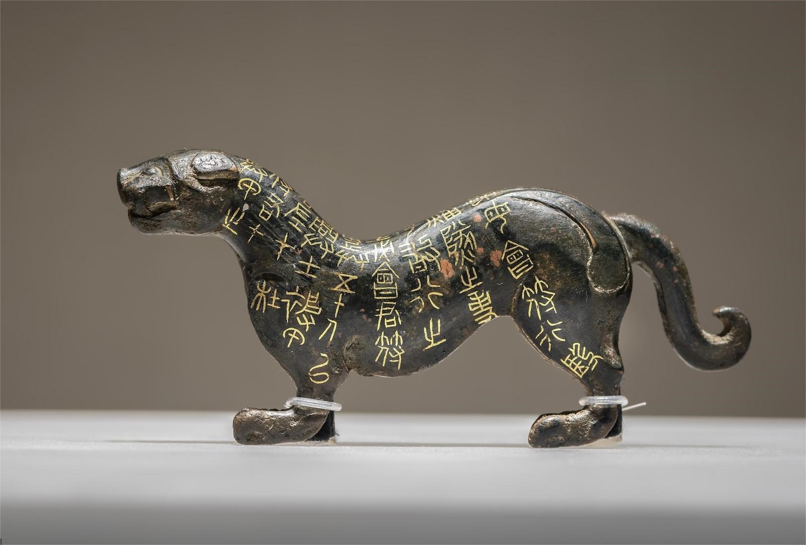 2300年前的戰(zhàn)國錯(cuò)金杜虎符,讓人穿越歷史,感受戰(zhàn)國時(shí)期沙場(chǎng)秋點(diǎn)兵的磅礴氣勢(shì)。陜西歷史博物館藏的錯(cuò)金杜虎符是一只霸氣虎,作行走狀,昂首,尾巴蜷曲?;⒎峡讨骸氨字S以诰?,左在杜。凡興士被甲,用兵五十人以上,必會(huì)君符,乃敢行之……”共9行40字,寫明了虎符的用法和調(diào)兵范圍。使用的時(shí)候,虎符必須左右兩半嚴(yán)絲合縫地對(duì)合在一起才能起效,這也是“符合”一詞的來歷。
