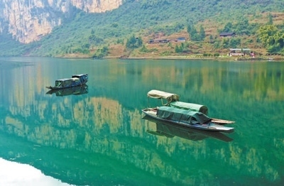 重慶酉陽龔灘鎮(zhèn)江面扁舟。段成軍攝(影像中國(guó))