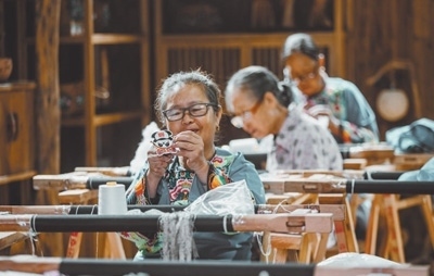 村民在酉陽苗繡非遺工坊繡制產(chǎn)品。游力克攝(影像中國(guó))