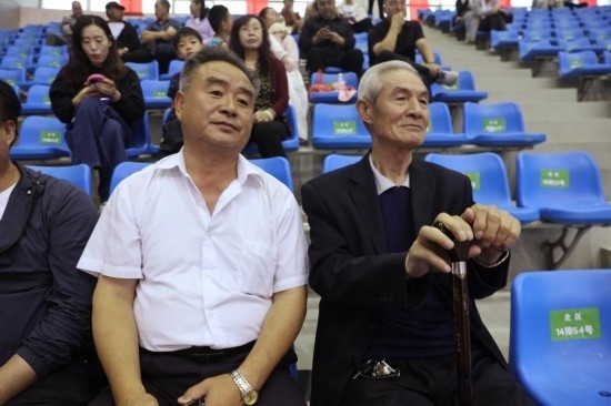 李順(右)與兒子李德文在比賽前等待開賽。新華社記者 呂澤 攝