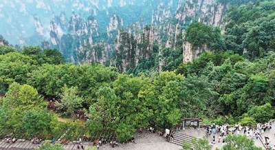 各國游客在張家界游玩。