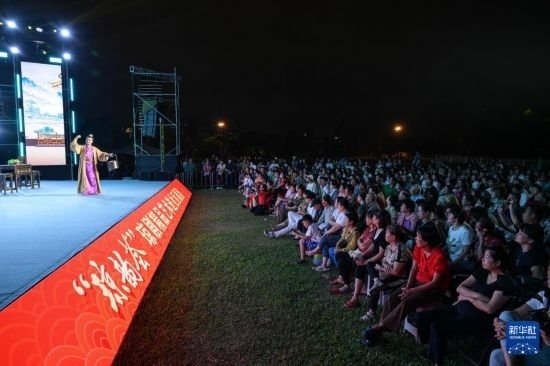 10月6日在海口市萬(wàn)綠園拍攝的“瓊韻薈”瓊劇精品藝術(shù)進(jìn)社區(qū)展演現(xiàn)場(chǎng)。