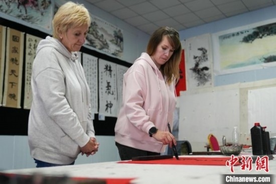 圖為外國友人進(jìn)行書法創(chuàng)作。韓慧峰 攝