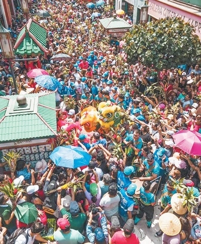 如今,舞龍舞獅已融入秘魯社會。每年中國春節(jié),醒獅團都會在唐人街游行表演,喜慶的鑼鼓振奮人心,龍獅獻瑞帶來歡樂祥和。秘魯民眾走上街頭,手持他們稱為“中國竹子”的轉(zhuǎn)運竹,簇?fù)碓邶埅{周圍,爭相看一看、摸一摸,希望沾上喜氣與幸運——這已成為秘魯一大民俗。在秘魯人的婚禮上,舞獅已成為一種時尚。