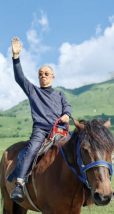 王蒙在新疆阿勒泰禾木留影。