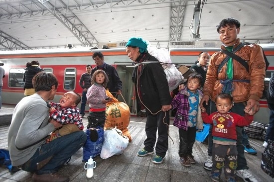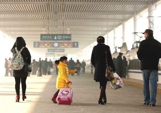 2015年,一對老兩口乘坐高鐵到北京與兒子過團圓年,實現(xiàn)反向春運。