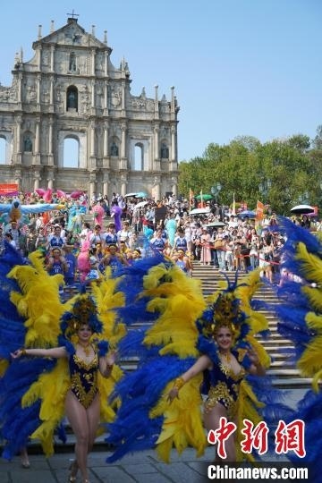 3月23日,“2025澳門國際幻彩大巡游”啟動,近1800人的巡游團隊帶著精彩表演從大三巴牌坊前出發(fā),穿越澳門歷史城區(qū)的舊街老巷,為沿途市民與游客呈獻精彩的文化交流盛宴。 中新社記者 鄭嘉偉 攝